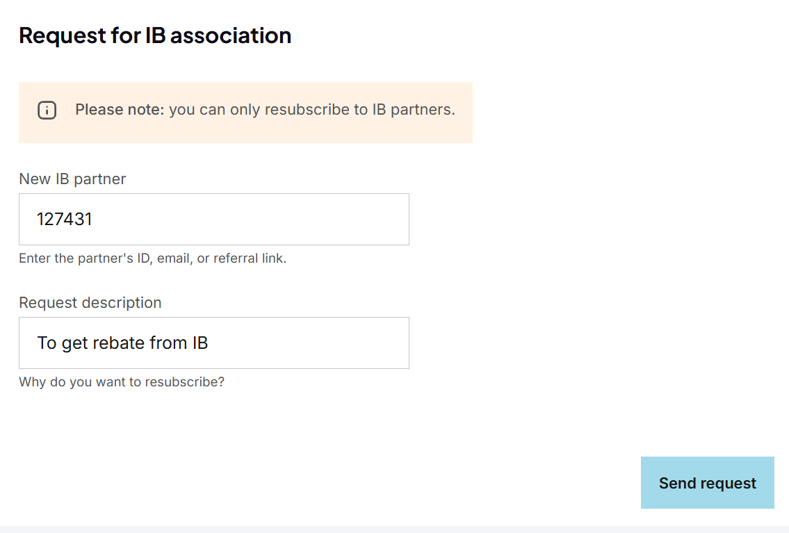 - Then click the "Send request" button, then wait until you get approval that your IB transfer has been approved.